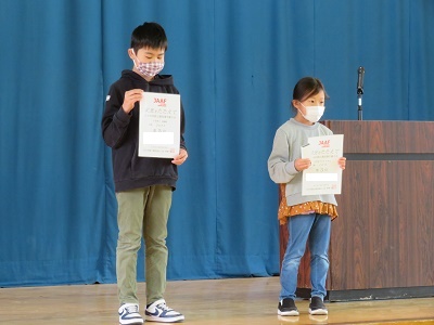 5年生と6年生が詩の朗読発表をしました。いままで暗唱してきた詩をみんなの前で堂々と発表することができました。また,今年白石市で作成・配布された暗唱読本「ゆめ」に載っている詩の暗唱発表も行いました。1年間続けると大きな成果になりますね。